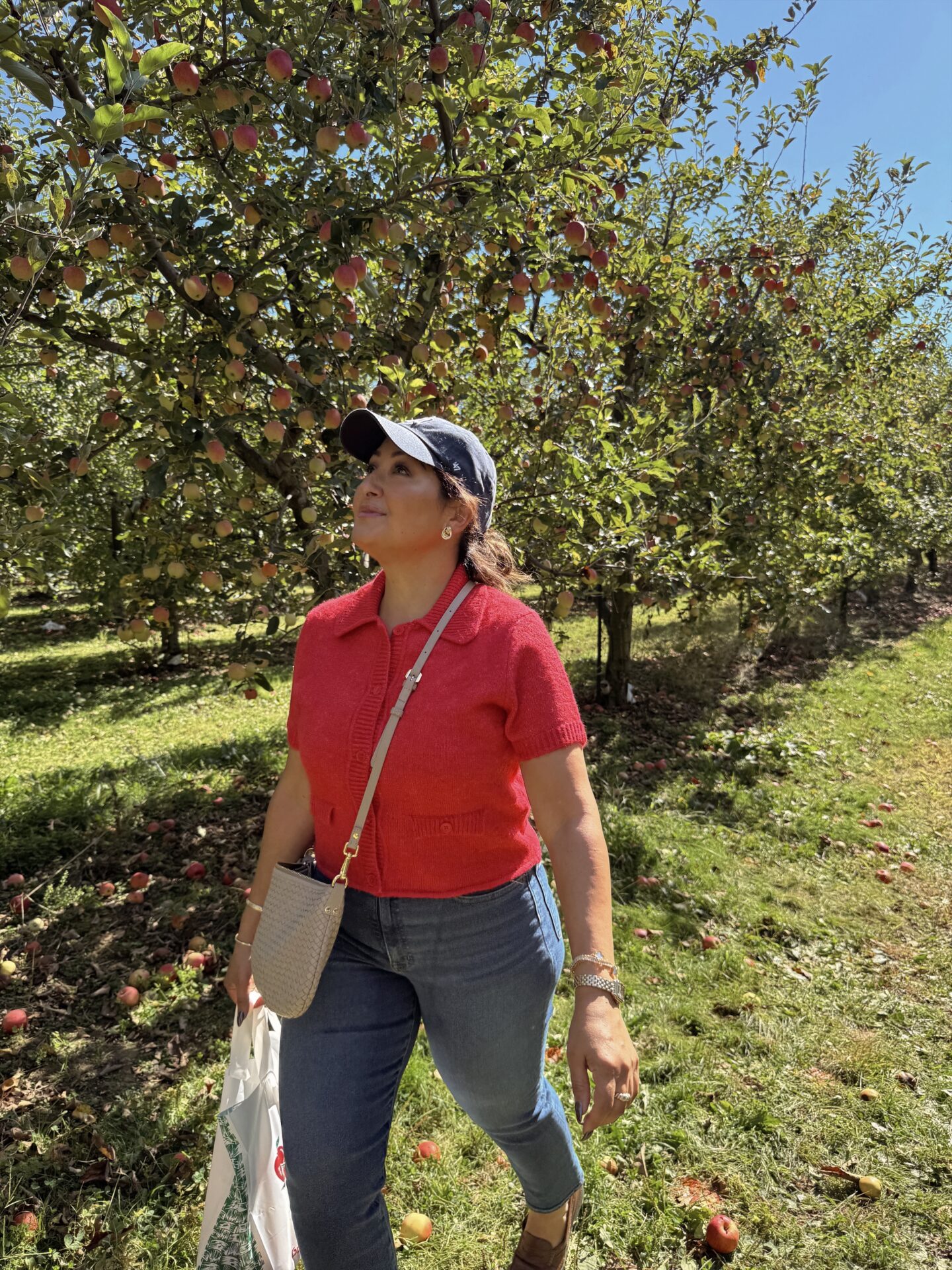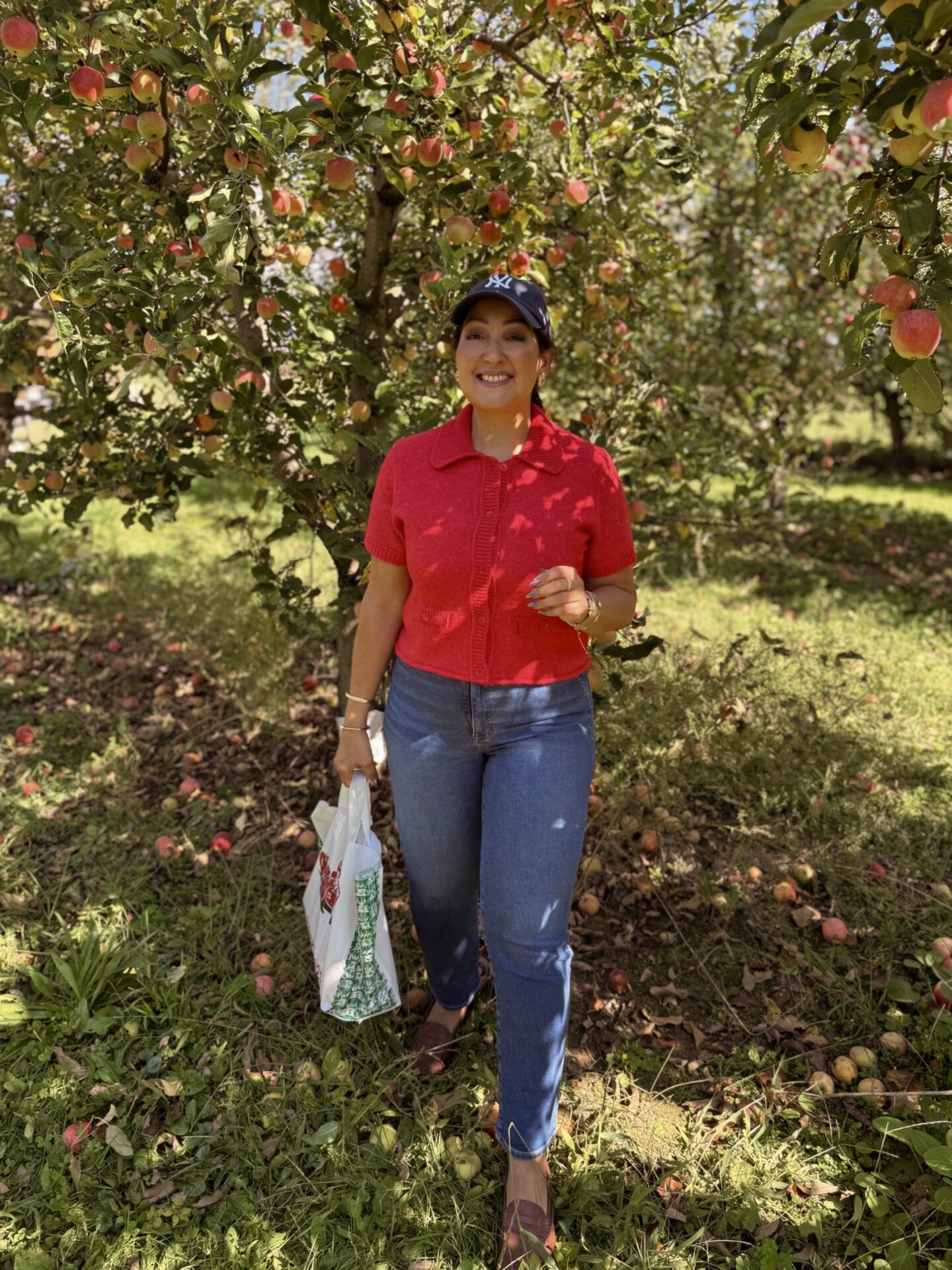 For the day, I wore this soft and super cute red short-sleeved cardigan I picked up from H&M. I paired it with these great fitting stovepipe jeans from J.Crew Factory, and my favorite og’s from G.H. Bass, the classic penny loafers. It was the perfect mix of classic prep and comfort for a fall afternoon outdoors. It was an easy outfit that felt pulled-together without trying too hard (and ideal for snapping a few orchard photos).